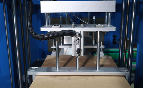 進(jìn)料:機(jī)器通過(guò)傳送帶將扁平的紙箱送入開(kāi)箱區(qū)域。
